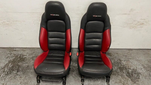 06 12 Corvette Z06 Leather Black Red Front Driver Passenger Seats Heated Pair