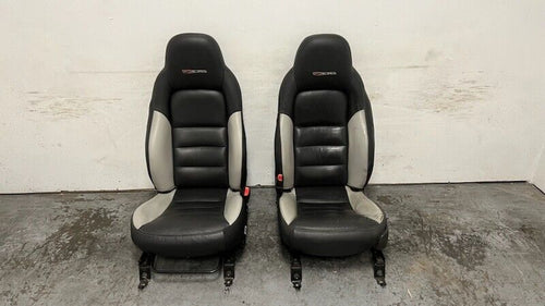 06 12 Corvette Z06 Leather Black Gray Front Driver Passenger Seats Heated Pair